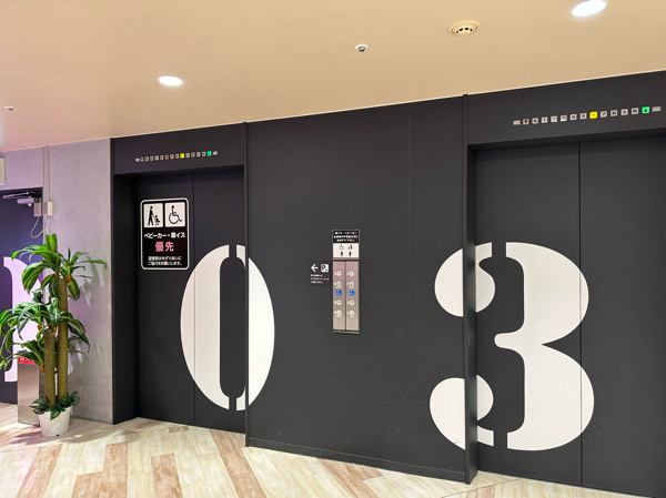 黒背景に白の数字のみのシンプルかつ大胆な看板である。このフロアが何階なのか一目でわかる。
